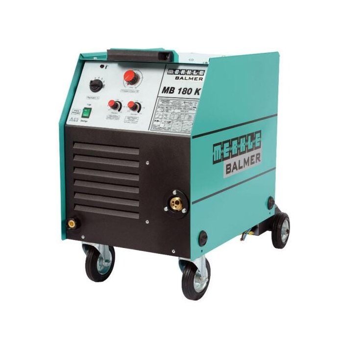 A fonte de soldagem MIG-MAG, modelo MB 180 K proporciona uma excelente estabilidade do arco elétrico em todas as faixas de soldagem com regulagem por comutador de múltiplas faixas que permite o ajuste preciso dos parâmetros, possui tracionador de 2 roletes com controle linear exato de velocidade com sistema de freio eletrônico do motor e compartimento do rolo de arame interno a fonte.