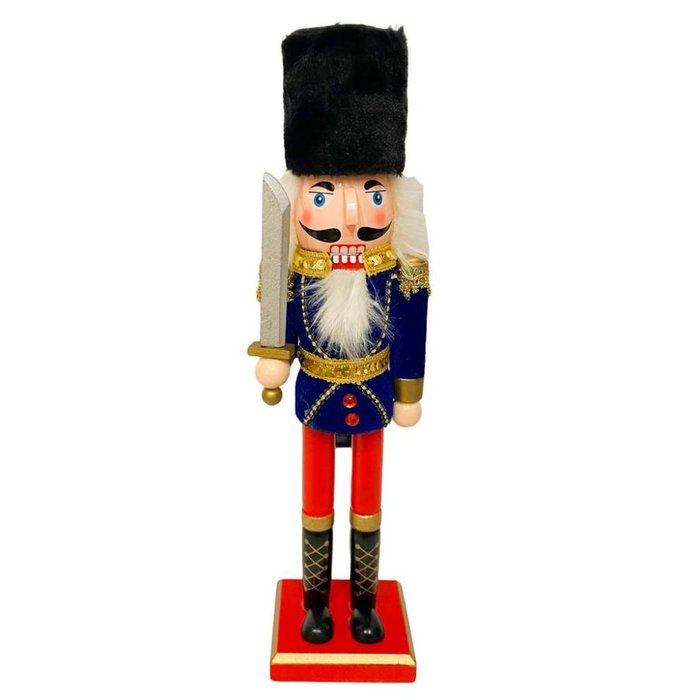 Soldado Quebra Nozes Die Farda em Tecido Azul Natalino 38cm