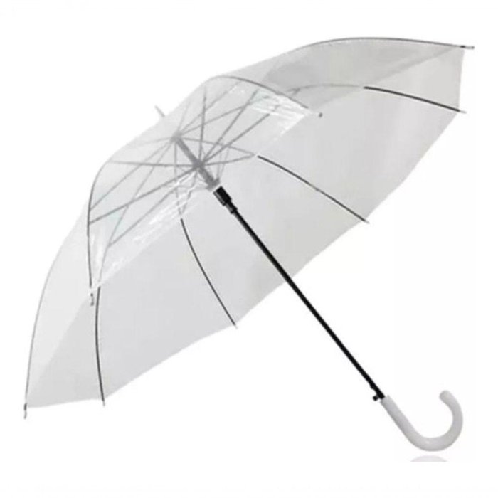 Sombrinha Transparente Grande Automático Adulto Bengala O Guarda Chuva Transparente Automático Resistente é perfeito para adultos que buscam um guarda-chuva de alta qualidade. Com seu design transparente e modelo automático, é uma opção prática e moderna para se proteger da chuva. Seu punho curvo proporciona conforto durante o uso. Não é dobrável, garantindo maior resistência e durabilidade. Sua cor principal é branca, combinando com qualquer estilo. Não possui proteção UV.
