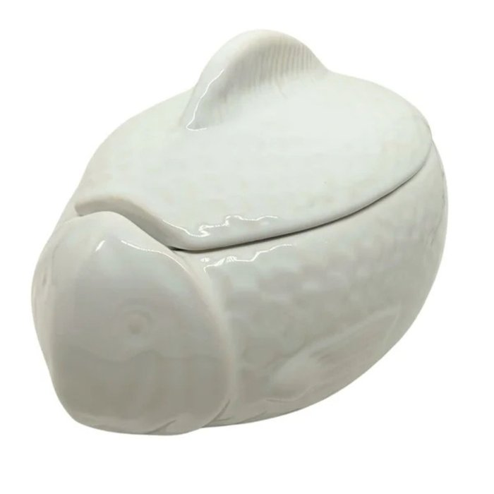 Sopeira com Tampa Formato Peixe em Cerâmica Branca
