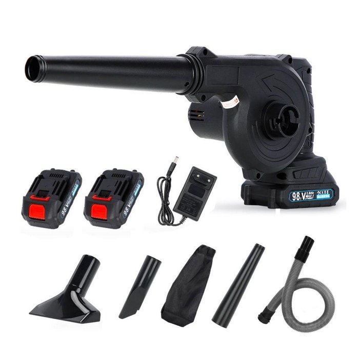 Soprador e aspirador de pó e resíduos recarregável, ideal para limpeza eficiente em variados ambientes. Este dispositivo multifuncional permite alternar facilmente entre a função de soprar, para remover pó e pequenos resíduos, e a de aspirar, para uma coleta prática e rápida. Equipado com uma bateria de alta capacidade, garante autonomia prolongada, eliminando a dependência de cabos e oferecendo liberdade total de movimento durante a limpeza.