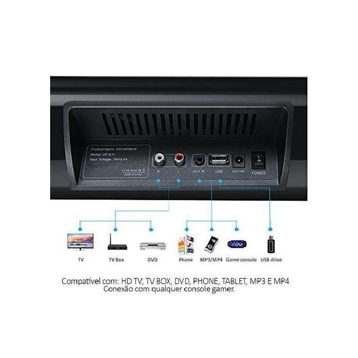 Produto ideal para ligar junto com a sua tv sound bar da marca tomate com bluetooth, usb, rca e auxiliar com 120w de potência, produto de extrema qualidade para quem busca uma ótima relação custo benefício. A opção do bluetooth lhe proporcionará a facilidade da conexão sem fio, serve para todas as tv s que tenha saída de áudio seja por conexão com fio (rca) ou sem fio, bluetooth.