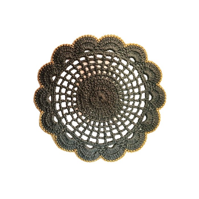 Sousplat Americano Redondo de Mesa em Crochê Verde Oliva / Dourado