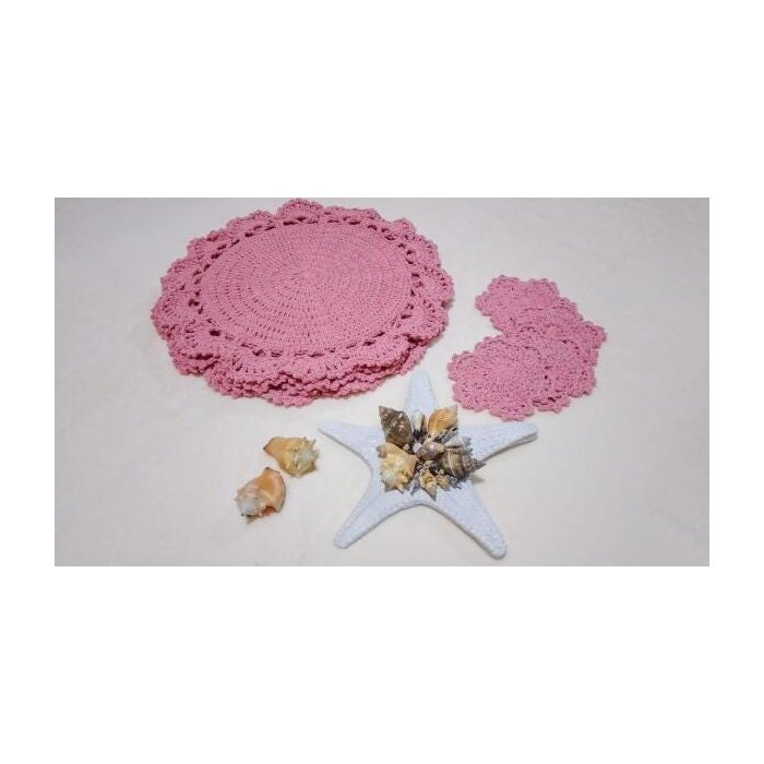 Sousplat De Crochê Rosa Conjunto Com 8 Peças