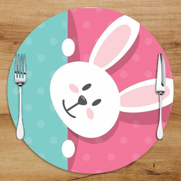 Sousplat Em Mdf Com Estampa Coelho Da Páscoa e Poá Verde Rosa