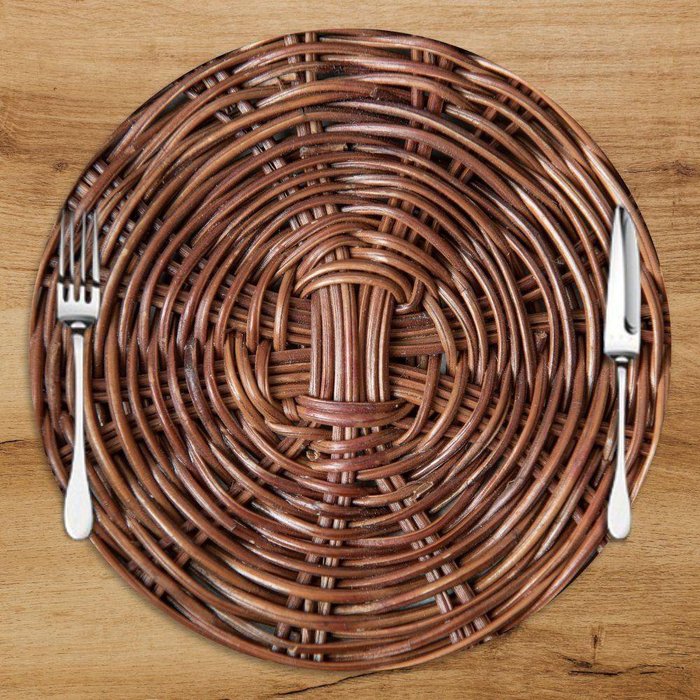 Sousplat Em Mdf Com Estampa De Vime Trançado Marrom