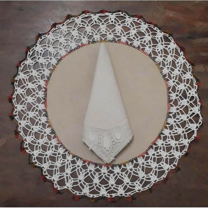 Sousplat Linho Com Crochet Yoongi Bege Kit Com 12