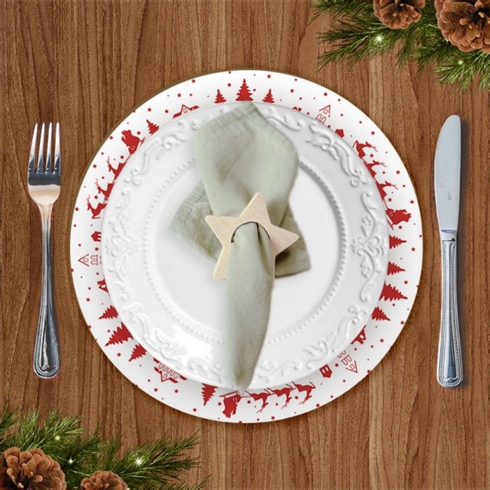 Sousplat Natal Branco e Vermelho com Porta Guardanapo Estrela -