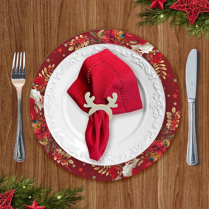 Sousplat Natal Vermelho Papai Noel com Porta Guardanapo Rena -