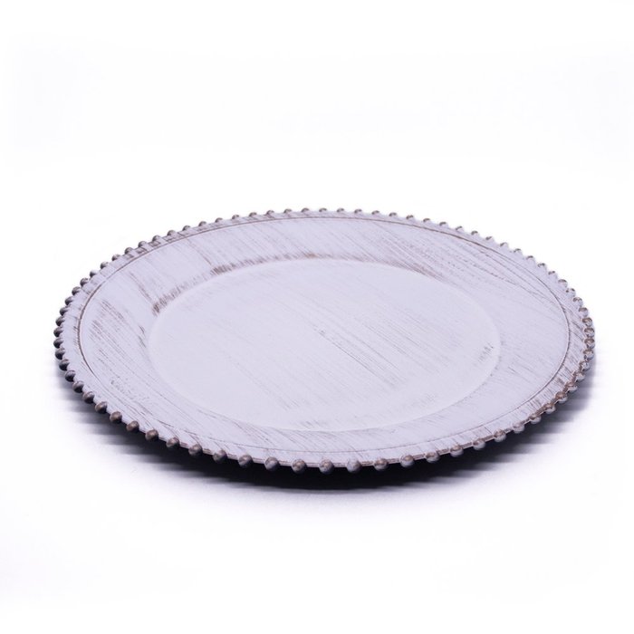 Sousplat Para Prato De Mesa Decorativo Branco e Rose com Borda Trabalhada em Bolinhas 33 cm - D'Ross