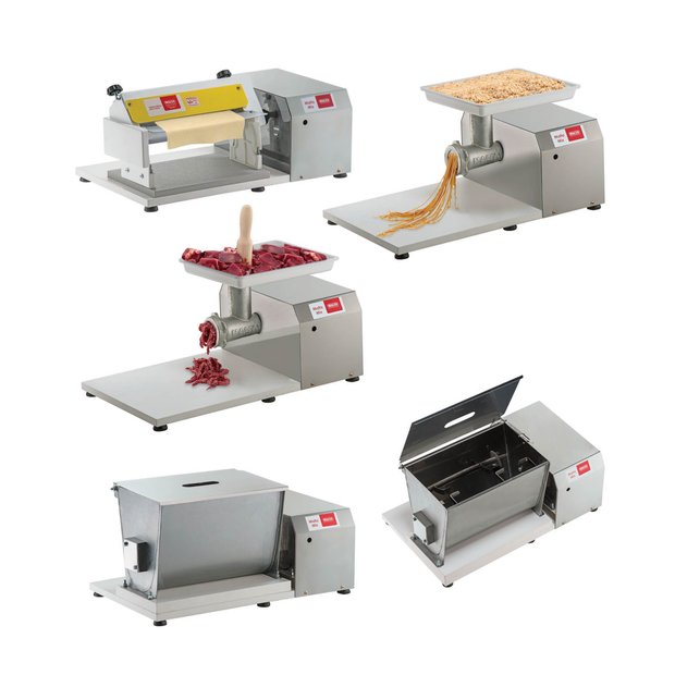 Malta Mix 5x1 Misturador Cilindro Moedor Extrusora Bivolt PRODUTO NOVO, ORIGINAL COM GARANTIA E NOTA FISCAL. Misturadeira até 4Kg de farinha e 6Kg de massa, Cilindro para massas até 28 cm, extrusora boca nº 5 para 5 tipos de massa e 4 tipos de biscoitos/ Produz 30Kg por hora de talharim. Funil de plastico para embutidos/ Caixa de força do gabinete com corrente dentada mais resistente. MANUAL DE INSTRUÇÕES E GARANTIA DE 06 MESES Limpeza: SABÃO NEUTRO COM FLANELA LEVEMENTE UMEDECIDO PARA USO SEMI - INDUSTRIAL COM SELO INMETRO