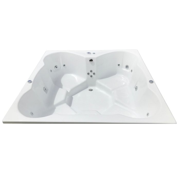 Standard: 6 jatos de hidromassagem, 1 dispositivo de sucção, 2 válvulas de controle de ar, 1 ralo de fundo, 1 ladrão abastecedor, 1 botão pneumático de acionamento e motobomba 3/4 CV.