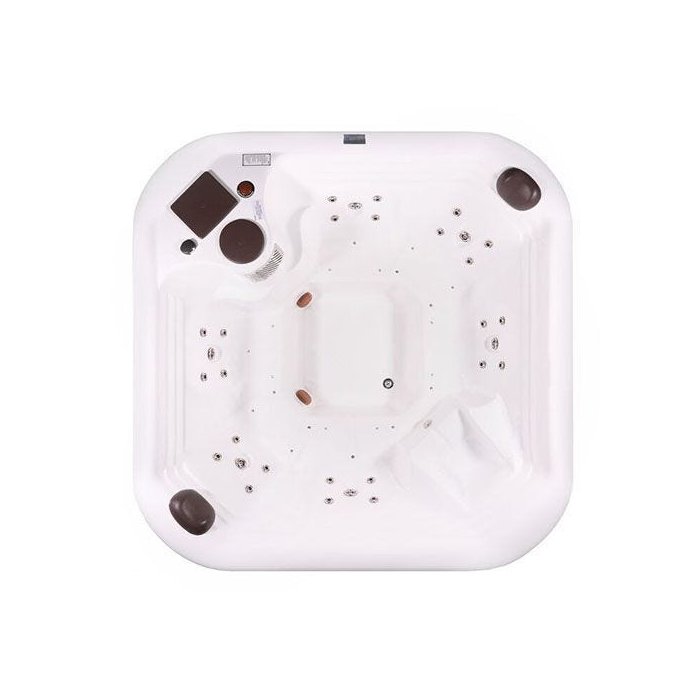 SPA GUARATUBA Modelo: Guaratuba Medidas: 2,20 X 2,20 X 0,84 m Pessoas: 06 PESSOAS (adultos) + 1 Criança Material: Linha Diamante ACRÍLICO / Linha Esmeralda Gel Coat LINHA DIAMANTE • 02 travesseiros • dispositivos de hidromassagem com acabamento em aço inox • sistema de filtro com skimer • 06 jatos grandes de hidromassagem • 27 jatos medios de hidromassagem • 02 sucções • 01 ralo de fundo • 01 válvula alimentadora para fluxo de ar dos jatos de hidromassagem • 02 motobombas • 01 sistema de aquecimento com painel de controle • 01 reservatório para ser usado como cooler • 01 sistema de iluminação • 01 ozonizador – sistema de tratamento da água com gerador de ozônio, sistema que ajuda a a manter a água limpa e tratada • 01 air blower – conjunto de sopradores de ar composto por jatos com válvula de retenção que evita o mau cheiro no spa • estrutura metálica auto portante confeccionada em aço galvanizado com pés reguláveis que permite uma instalação prática e limpa LINHA ESMERALDA • dispositivos de hidromassagem com acabamento em aço inox • sistema de filtro com skimer • 06 jatos de hidromassagem • 04 jatos de hidromassagem grande • 04 jatos de hidromassagem médio • 01 sucção • 01 ralo de fundo • 01 valvula alimentadora para fluxo de ar dos jatos de hidromassagem • 01 motobomba • 01 aquecedor elétrico com marcador e controlador de temperatura e iluminação • 01 sistema de iluminação de cromoterapia c/ 01 refletor instalado • 01 reservatório para ser usado como cooler Estrutura em fibra de vidro totalmente autoportantes. Duas opções de acabamento: 1)Acrílico Lucite (USA) 2)Pintura em Gel Coat da melhor qualidade (fornecido pela Reichhold – fabricante de resina). com barreira Química (uso de resina especial, usada em embarcações) Dispositivos com acabamento em aço inox 316 Montagem hidráulica com tubulação em PVC, manifold de distribuição dos jatos (bicos grandes, médios, pequenos e micro) Aquecedor elétrico com quadro de comando de temperatura e opcionais A maioria dos modelos com Skimmer e sistema de filtro de cartucho Travesseiros Iluminação RGB Air Blower Deck Vertical Todos os Spas e Banheiras, são testados um a um antes de serem embalados para transporte.