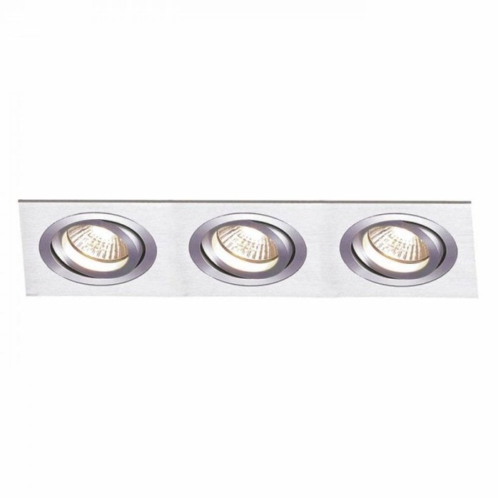 Spot embutido ECCO 3Xmini dicróica alumínio click BELLA NS5103A / dimensões: comp. 7,6cm; larg. 22,2cm; alt. 5cm / nicho: comp.7,0cm; larg. 21,4cm / direcionável em 360° graus / com recuo anti ofuscante / IP20 área interna / alumínio / para 3 lâmpadas mini dicroica gu10 / lâmpada não inclusa / 1 ano de garantia / BELLA / NS5103A