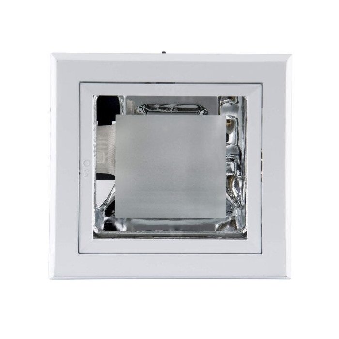 Este é um Spot quadrado de Embutir da Linha SpotE27, com 17cm, produzido em alumínio e aço, pintado na cor branca, com 1 soquete E27 compatível com lâmpadas eletrônicas de até 16W (lâmpada não inclusa)
