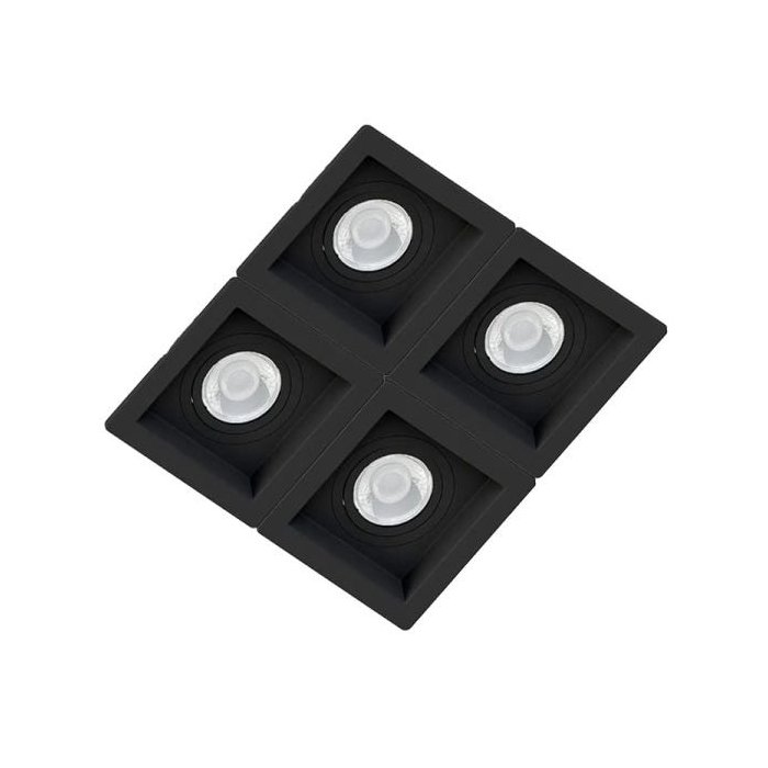 Spot Quadruplo Embutir Quadrado Recuado Preto para Dicróica Gu10 Mr16