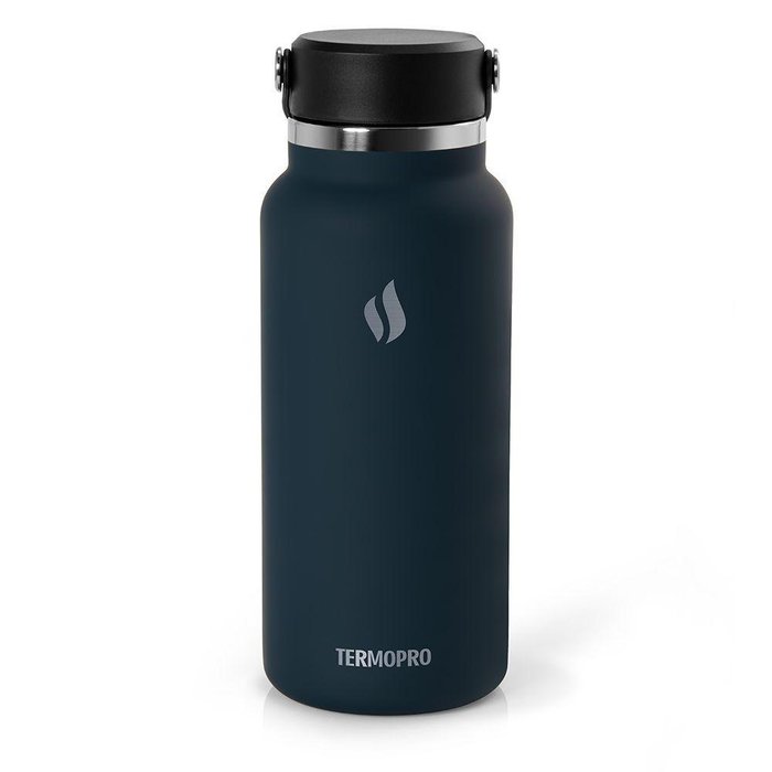 O Squeeze Térmico Circinus Termopro 1 L Azul é produzido com dupla camada de aço inoxidável, conservando as bebidas quentes por até 6h e frias por até 12h. Possui bico largo, anel de silicone antivazamento, alça para o transporte e acabamento fosco.