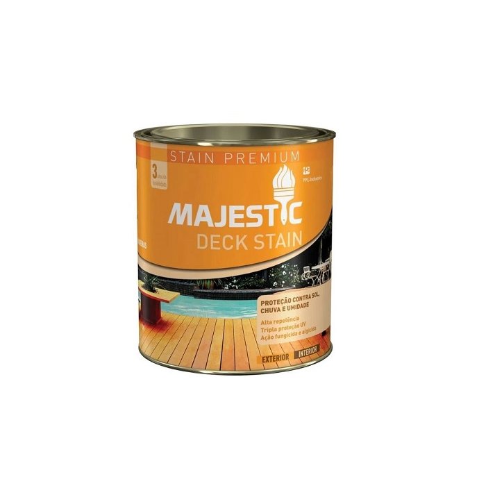 Majestic Deck Stain foi especialmente formulado para proteção de decks de madeira e ambientes expostos ao sol e a umidade. Com acabamento impregnante, Majestic Deck Stain impermeabiliza, oferece tripla proteção UV, não forma película ou filme, possui ação fungicida e alta hidrorrepelência, para deixar seu ambiente protegido e bonito. Indicado para proteção de madeiras em ambientes internos e externos é o produto ideal para você começar a renovar seu ambiente agora mesmo.