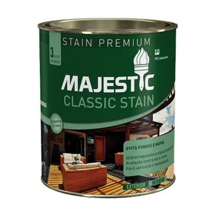 Majestic Classic Stain é um acabamento impregnante, que concede à madeira hidrorrepelência, tripla proteção UV e excelente resistência às ações do sol e da chuva. Possui ação fungicida e algicida para evitar o aparecimento de fungos e mofos