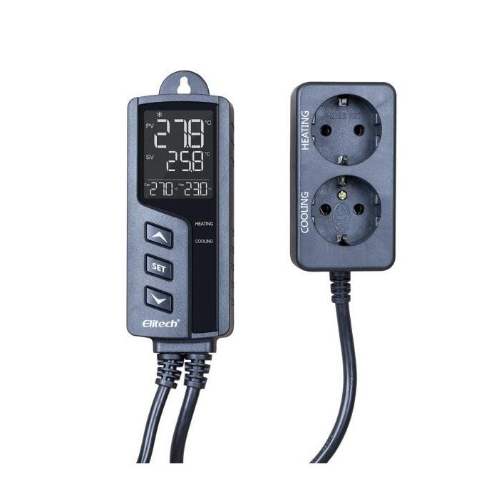Stc-1000pro é um controlador de temperatura digital inteligente plug-and-play. possui duas saídas, uma de aquecimento e uma de resfriamento que permitem conectar de maneira fácil seu equipamento de refrigeração e aquecimento para realizar o controle automático ideal da temperatura. seu design de três botões e a tela LCD proporcionam um efeito visual nítido nas visualizações de temperatura e nas configurações de personalização, possui opção para unidade de temperatura em °C / °F.