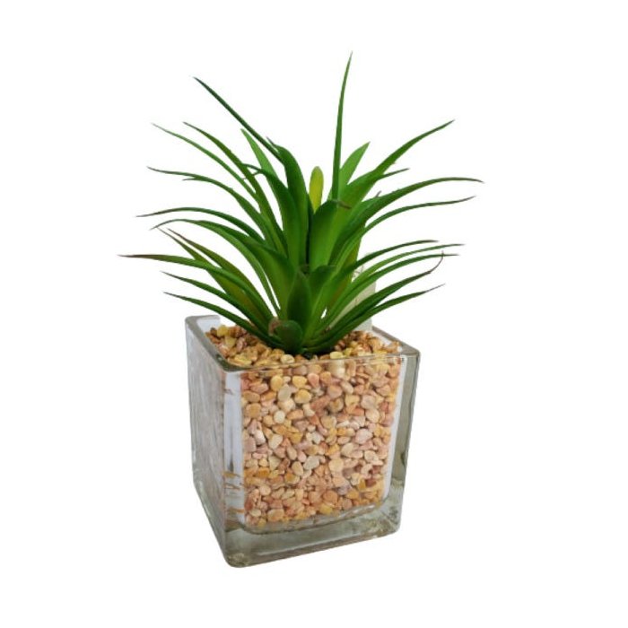 Vem decorar, seja INIGUAL!USO: As plantas e flores permanentes são ótimas opções para quem quer decorar, mas não tem tempo de cuidar diariamente de plantas naturais. Ficam floridas o ano todo, podem embelezar qualquer lugar da casa, sem risco de murchar, morrer, ou causar alergias. São de fácil manutenção, têm maior durabilidade que as naturais e são tão bonitas quanto. Deixe os detalhes valorizarem seu ambiente!!MEDIDAS: Altura: 18,0cm / Largura: 13,0cm / Profundidade: 13,0cm / Peso: 695gSomente o Vaso: Altura: 8,0cm / Largura: 8,0cmMATERIAL: Vidro, Plástico, PedrasCONTEÚDO DA EMBALAGEM: 1 Vaso com pedras e suculenta artificial