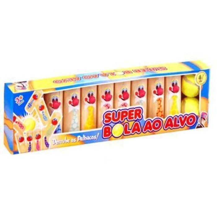 Super Bola ao alvo Cara de Pau. Vem com duas bolas e dez pinos de madeira com carinha de palhaço. As crianças vão adorar! Desenvolve habilidade, estimula a força e a agilidade. Especificações:10 Palhaços de madeira. 02 Bolas. Indicado para crianças a partir de 3 anos.