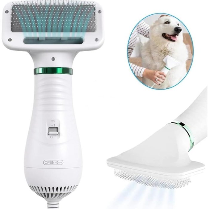 Este secador multifuncional 2 Em 1 para o pet é a solução para secar seu animal de estimação com ótimos cuidados.Uma escova para remover pelos soltos, manter o pelo macio e limpo, não enrolado.Ótimo para pelos de animais de estimação domésticos gerenciando secagem rápida e bonita, mais conveniente e economiza tempo.Especificação:Voltagem: 110vPotência de energia: 300 WPente de pente: Pente de agulha finoMaterial: Material de alta qualidade: Abs e Aço InoxidávelTamanho do produto:Altura: 23cmLargura: 13cm