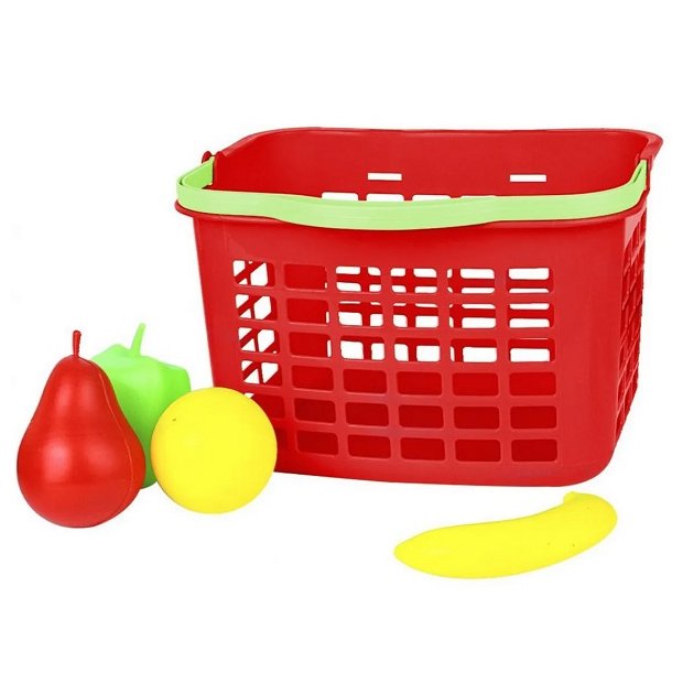 Possui uma cestinha linda com várias comidinhas lúdicas como caixinha de leite, molho de tomate e diversos legumes coloridos.
