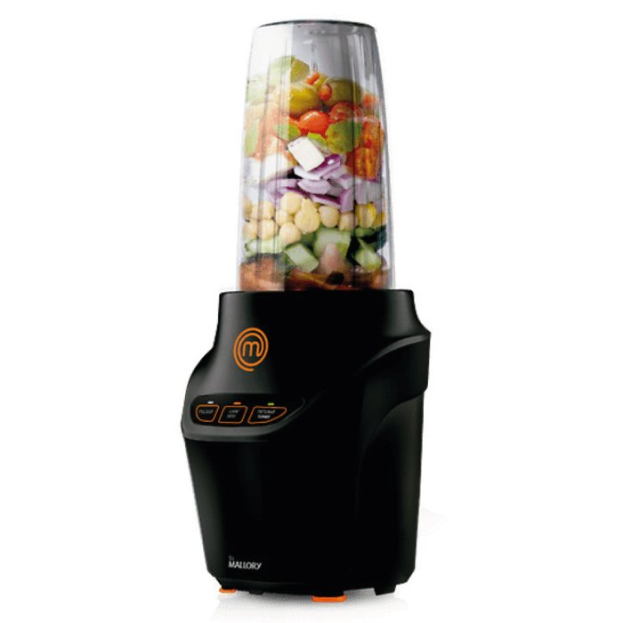 O SUPER PROCESSADOR E LIQUIDIFICADOR MASTERCHEF da Mallory aproveita 100% dos alimentos com seus 1000W de potência. Possui faca em aço inoxidável de alta resistência, 6 lâminas que trituram gelo e alimentos sem a necessidade de coar. Painel Easy Touch com as funções Pulsar, Misturar e Turbo. Acompanha 02 copos, em TRITAN, que são ultra resistentes. Com tampas para consumo e acondicionamento são ideais para transportar para qualquer lugar. Possui ainda travas de segurança. Produto exclusivo e licenciado MasterChef.