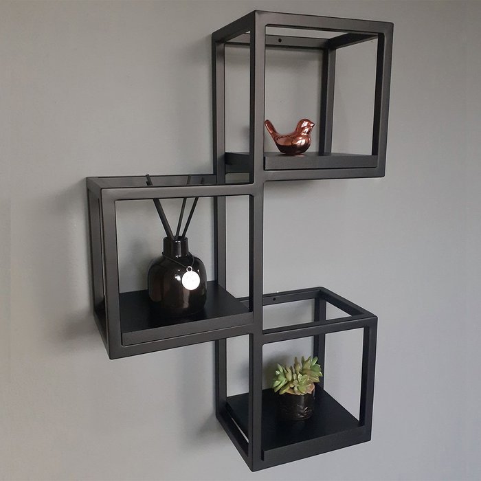 Suporte 3 Nichos Industrial De Parede Ferro E Mdf Preto