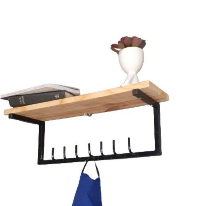 Suporte 7 Ganchos Madeira Sala Quarto Escritório 15x45