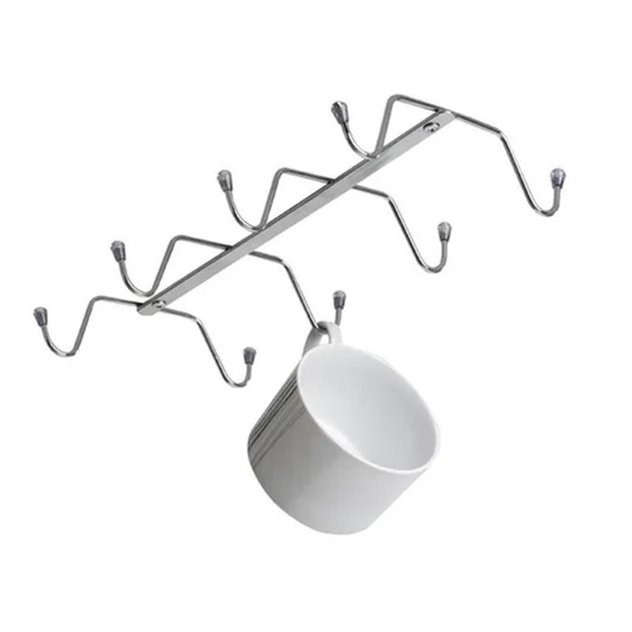 Suporte 8 Ganchos de Xícaras Aéreo Caneca Pendurar + Fixação Cor:Cromado
