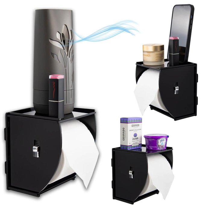 Adicione praticidade e um toque de elegância ao seu banheiro com o Suporte de Papel Higiênico em Acrílico Preto.