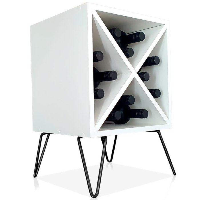 Pensado em cada detalhe o vinho possui 4 cavidades triangulares que armazenam até 12 garrafas de vinho deitadas, que são a melhor maneira de deixar elas organizadas. Fabricado em MDF TX Fosco de 15mm a peça ainda recebe um acabamento com Fita PVC por toda lateral, já os pés são fabricados em ferro maciço e recebem pintura epóxi com tratamento anti oxidante.