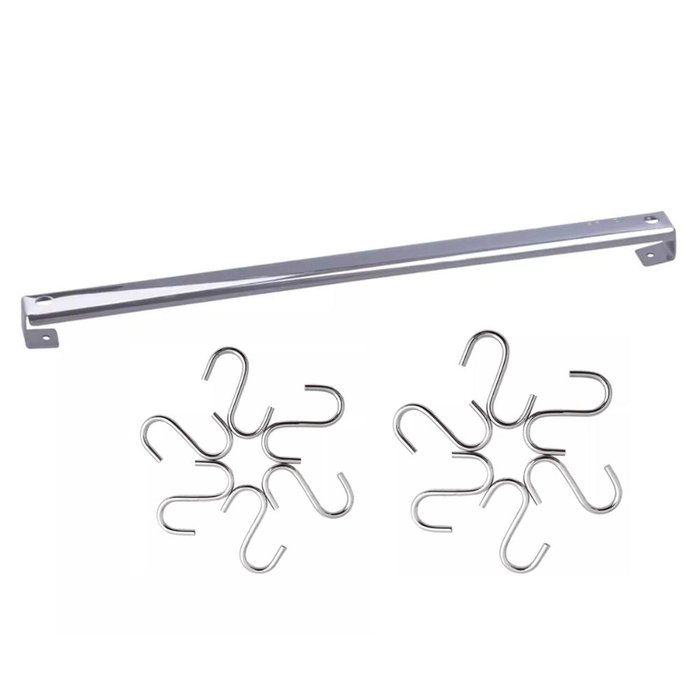 Suporte Barra 40cm Aço Inox e 12 Ganchos em Aço Cromado