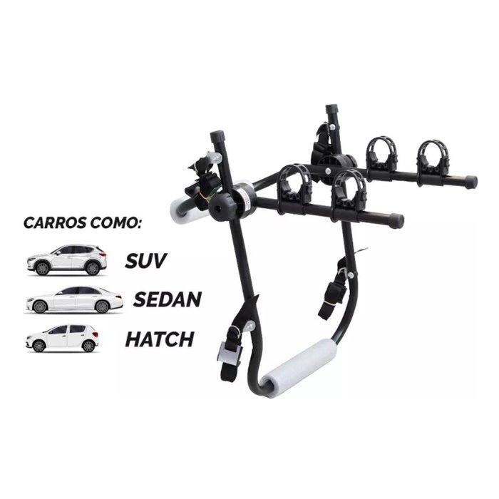 Suporte para até 2 bicicletas, compatível com a maioria dos carros hatch, sedans e suvs