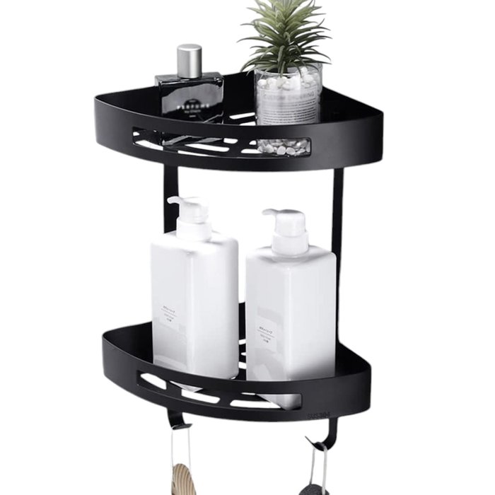 Suporte de Canto Banheiro 2 Prateleiras Box Organizador Shampoo Condicionador Sabonete Decoraçao Mul Preto Fosco