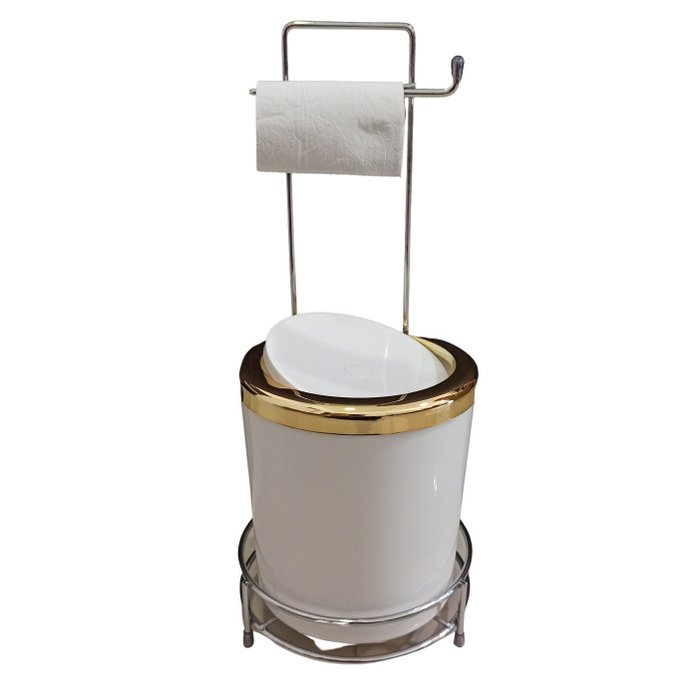 Suporte De Lixeira Piso Banheiro 5 Litros Inox Papel Lixo Cor:Branco