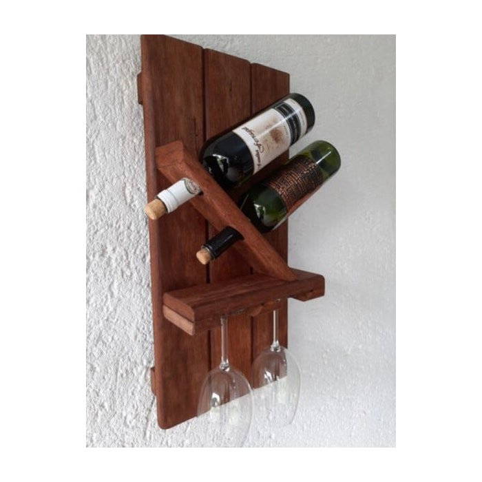 Acompanha somente a peça de madeira +2 buchas de fixação com os parafusos, não acompanha as taças e o vinho.