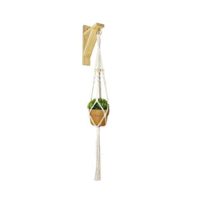 O suporte de plantas em macramê é uma ótima opção para compor a decoração de qualquer ambiente. O produto acompanha suporte em macramê e mão francesa de madeira pinus. Produto 100% artesanal. Por isso, as dimensões podem sofrer pequenas variações.