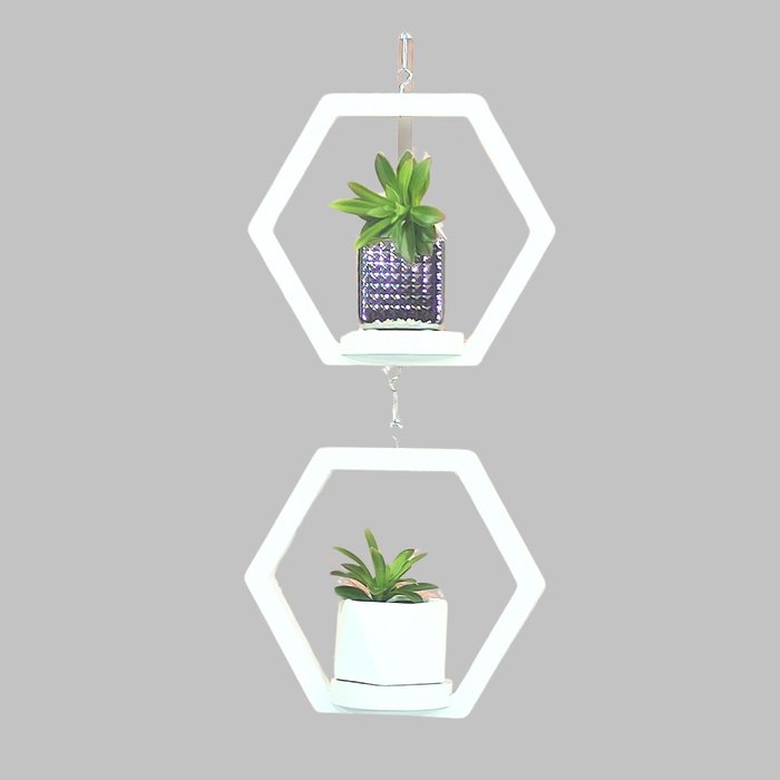 Suporte de Plantas Hexagonal Duplo Pequeno Branco Ice