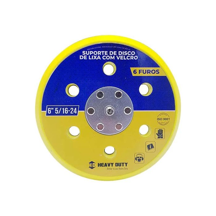 Suporte Disco Lixa c/ Velcro 6” 5/16 6 Furos - Heavy DutyDescrição: Suporte para disco de lixa com sistema de velcro, ideal para fixação de discos de lixa em ferramentas. Compatível com discos de 6 polegadas, apresenta 6 furos para uma aderência segura e eficaz.Especificações: