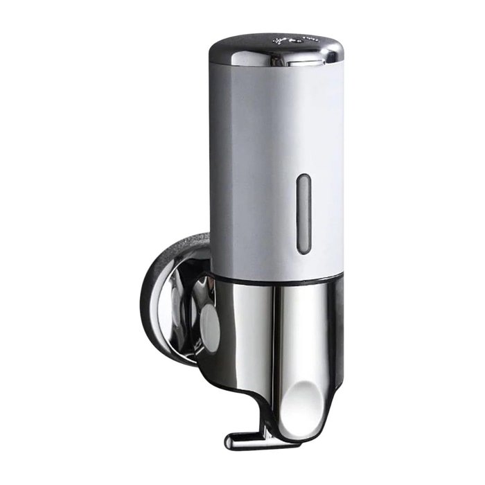 Dispenser de Parede Prata, 24cmX10cmX10cm. Ideal para banheiros, cozinhas e ambientes comerciais. Com capacidade de 500ml, pode ser usado para sabonete líquido, álcool gel, shampoo e condicionador. Feito em ABS resistente, é fácil de limpar e tem design compacto para otimizar espaço. A dosagem manual evita desperdícios, e a trava de segurança oferece mais proteção.
