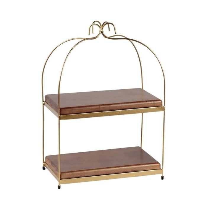 Suporte Gaiola Retangular Rústico Dourado 47x20x32cm