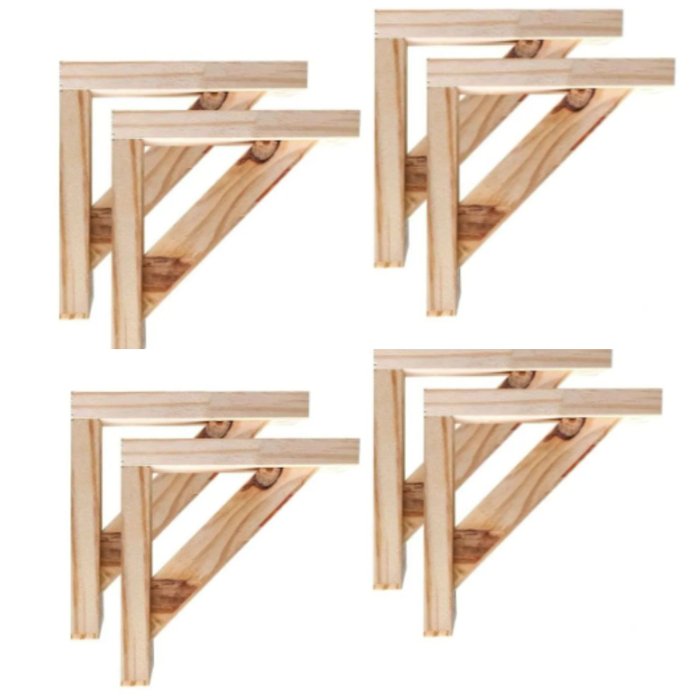 Suporte Madeira Mão Francesa Pinus 20x20cm Kit 8 Unidades pinus