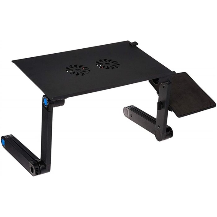 Laptop Tabelas são as mesas de laptop de alumínio de melhor qualidade no mercado. Este item é muito utilizado para laptops e notebooks de qualquer tamanho. Pode suportar até 21 polegadas laptops e pode transportar peso de 15 kgs. Mesa de laptop de alumínio T9 também vem com um mouse pad destacável / destacável. Este modelo tem um grande ventilador de refrigeração seis e que funciona com energia USB do Laptop / Power Bank / Direct AC Adapter. A mesa de laptop de alumínio T9 é fácil de transportar e facilitará sua vida. Você pode trabalhar longas horas ou assistir a filmes na cama, no chão ou ao viajar de carro.