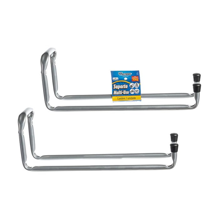 SUPORTE MULTIUSO 30CM - Dimensões da Peça: 9 x 30 x 12cm - Dimensões da Embalagem: 9 x 30 x 17cm - Quantidade Inner: 5 Peças - Dimensões Inner: 33 x 14,5 x 14cm - Quantidade Master: 100 Peças - Dimensões Master: 68 x 30 x 43,5cm - Material: Aço Carbono e Plástico - Cor: Prato com Preto - Tipo de Embalagem: Suporte - Marca: Western - Origem: China - Capacidade Suportada: 10kg - Espessura: 1,2cm - Contém: 1 unidade - Características: - O suporte multiuso é um item prático que vai facilitar e trazer praticidade ao seu ambiente. - Ideal para manter o ambiente organizado. - Utilizado para pendurar escadas, cadeira dobráveis de praia, mangueiras, fios e outros. - Perigos: - Não colocar mais peso do que o suportado pelo produto para evitar possíveis acidentes. - Advertência: - Produto não acompanha buchas e parafusos, os mesmos devem ser adquiridos separadamente. - Instruções de uso: -