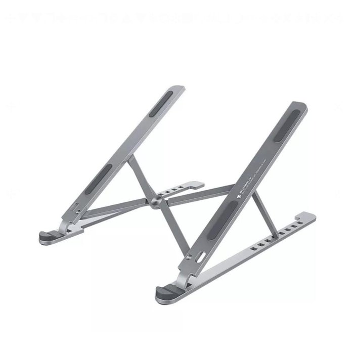 Suporte para notebook alumínio ajustável dobrávelMaterial: alumínio e silicone.Tamanho do suporte aberto: 26cm comprimento, 18,5cm de largura, altura ajustável com oito regulagens sendo 6cm, 9cm, 11cm, 13cm, 14cm, 15cm, 16cm, 17cm de altura.Você costuma sentir dores musculares depois de horas se curvando sobre um laptopSe você sofre desse problema temos uma solução excelente para te apresentar.O suporte de laptop ventilado ajudará a transformar seu laptop em uma estação de trabalho de postura perfeitamente postada e permitirá que você se adeque à dor e tensão no pescoço.Medidas fechado26cm comprimento4cm de largura1cm de grossuraMedidas aberto26cm comprimento18,5cm larguraAltura de regulagens notebook 6cm, 9cm, 11cm, 13cm, 14cm, 15cm, 16cm, 17cmSuporte dobrável ultrafino para laptop o ângulo de elevação ergonômico protege a coluna cervical e a saúde ocular do usuário. A liga de alumínio é pratica vários silicones oferecem a melhor proteção para o seu equipamento design especial reserva de cabo de computador oco para armazenamento fácil.Características:-conceito fácil de usar ajuste facilmente para um ângulo confortável. Design ultrafino portátil para trabalho diário e viagem de negócios.- o suporte do computador é compatível com todos os notebooks slim de 14 a 17,3 polegadas, como macbook air / pro google pixel book, asus, lenovo thinkpad, acer, chromebook, samsung, tablet, ipad e muito mais.- o material da liga de alumínio pode facilmente absorver e descarregar calor. O ângulo de inclinação para a frente e o design aberto oferecem maior ventilação e mais fluxo de ar para resfriar o computador durante a operação, além de estar sobre a mesa.-ele pode ser o seu companheiro ideal em casa, no escritório, no aeroporto, na lanchonete ao ar livre. Pois ele é de fácil transporte.Lista de embalagem:1 - suporte para laptop1 - case de proteção para transporte