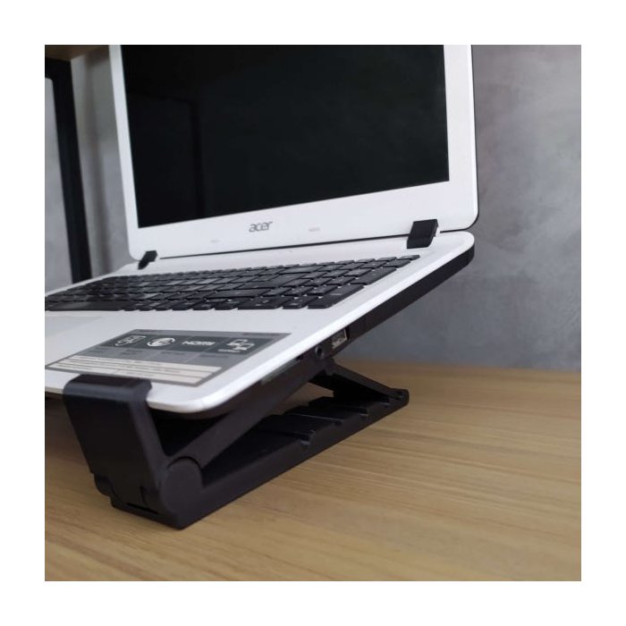 Suporte com 5 regulagens de inclinação permitindo que você coloque seu notebook na melhor posição de uso, além de evitar o aquecimento do mesmo.