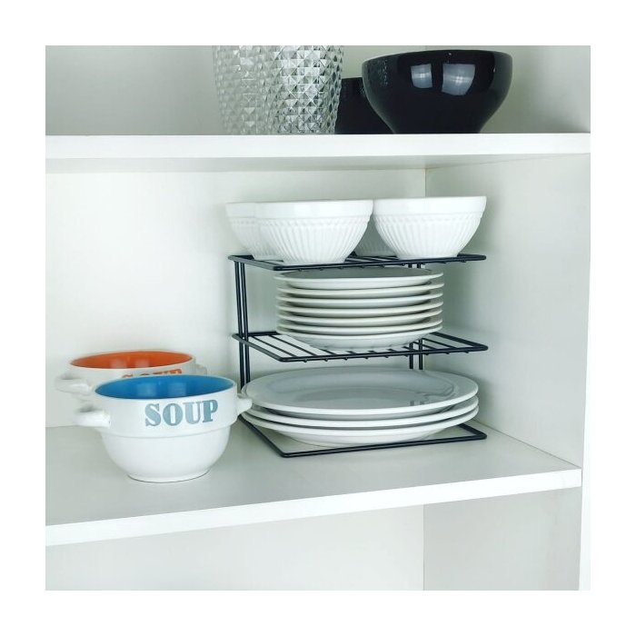 Suporte Organizador de Pratos Quadrado Armário Cozinha Preto